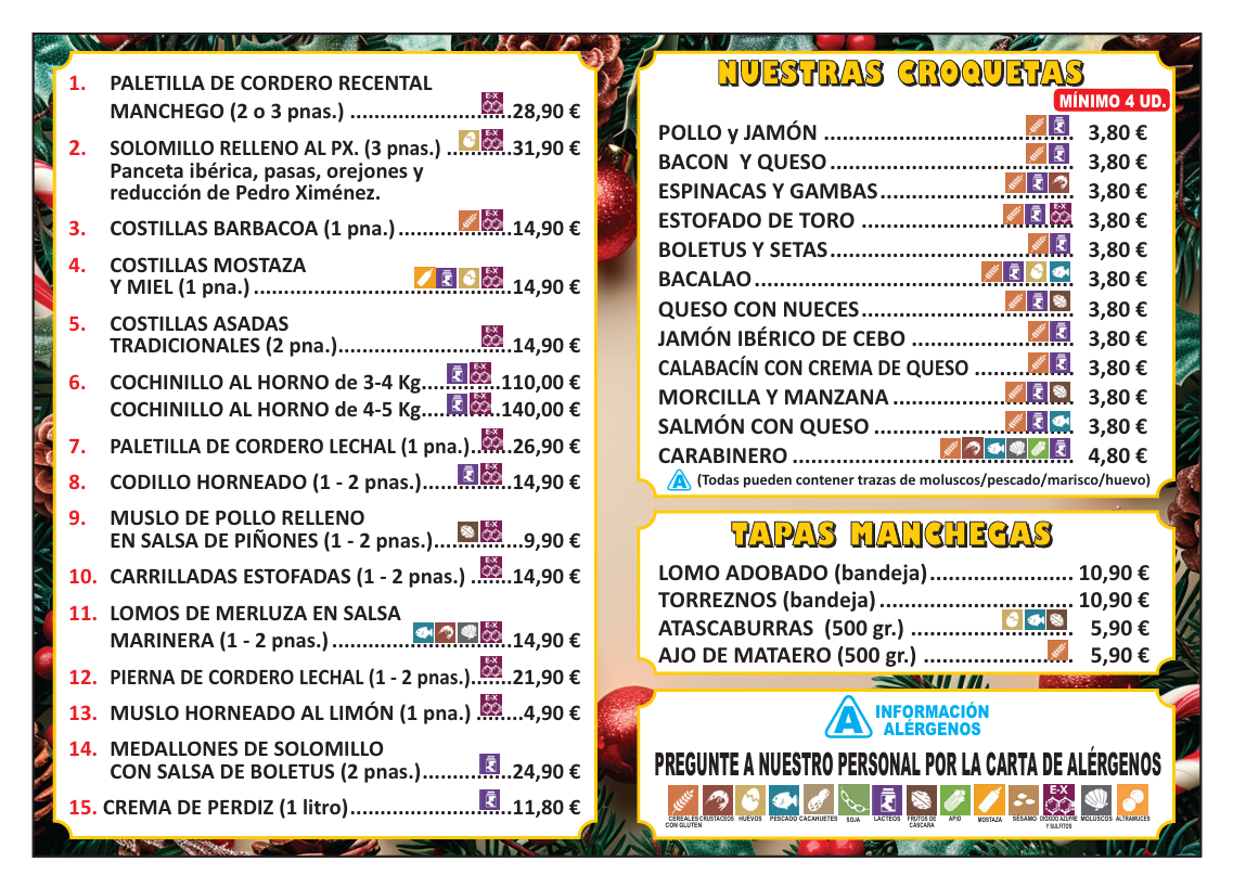Pero…¿Qué platos puedo pedir a Don Asado? En Don Asado ofrecemos una carta especial para las fiestas navideñas que mantiene la esencia de los platos que ofrecemos todas las semanas pero aportando un toque festivo.